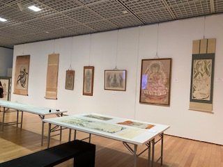 戦後80年に併せて、遠藤虚籟が世界の平和を願って綴織にて曼荼羅を織り続け、虚籟の原点でもある油絵や書、宗教観、デッサンや下絵など多くの作品がアートフォーラムにて展示されました。